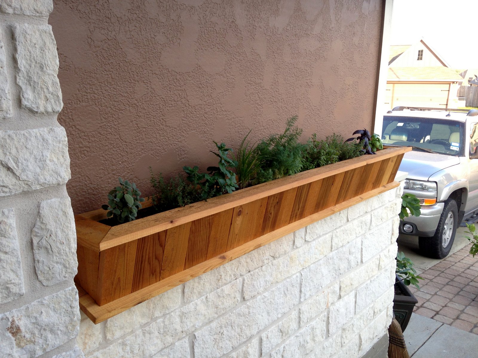 I'd had the itch to do some kind of fun woodworking project for a while, and this is the one that won out. As you walk up to our front door, there's this ledge that screamed out to me to use. It's about 4 feet high and 6 feet long, I thought "perfect for a nice cedar flowerbox".